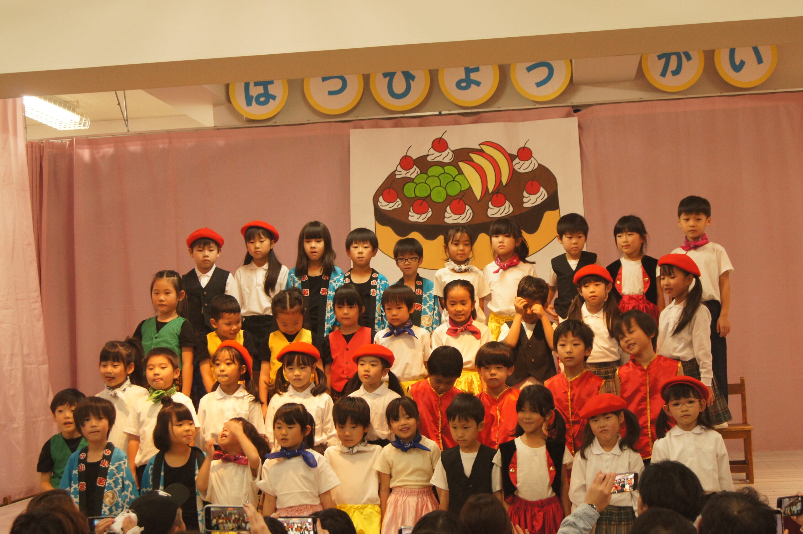 合奏・お遊戯・劇などお家の方に見てもらいたい思いで、日々発表会ごっこを楽しんできた子ども達。発表会当日は、一人ひとりが表現を楽しんだり、出来るようになったお遊戯などを披露する場となりました。自分の出たいお遊戯や劇の役を選び、演じる姿は輝いていました。舞台裏では緊張していた子も素敵な衣装姿をお家の方に見てもらえることが嬉しく、舞台上では堂々としていました。保護者の保護者の方々の温かく見守ってくれたおかげで、発表会は大成功でした。